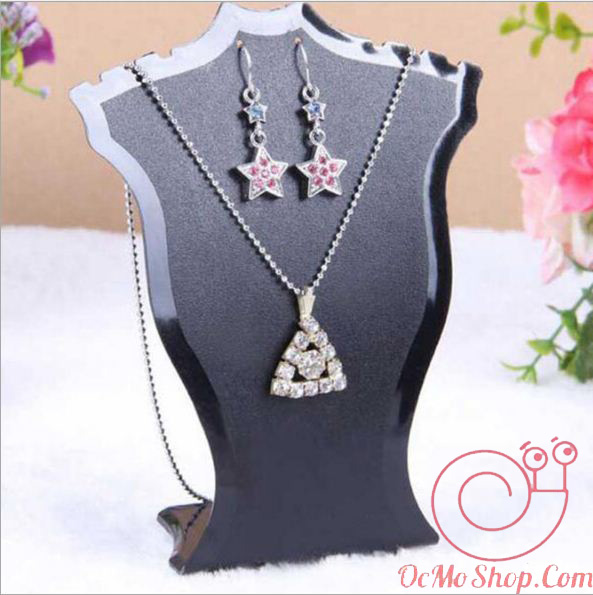 Cổ trưng bày dây chuyền, bông tai mica màu đen