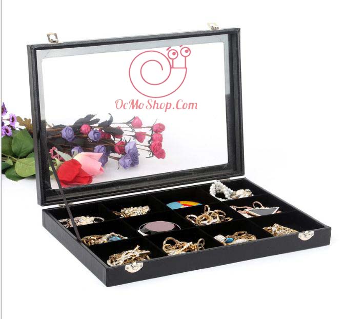 Hộp Đựng Phụ Kiện, Trang Sức 12 Ngăn Mặt Kính Size Lớn Cao Cấp