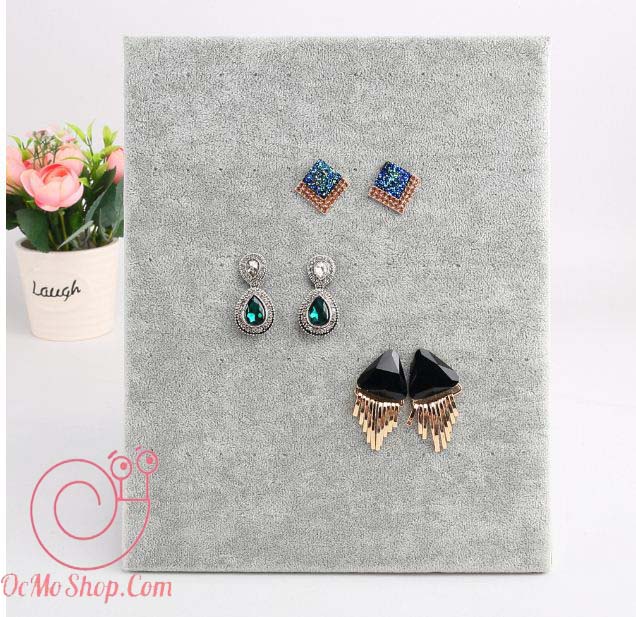 Hộp đựng bông tai, khay trưng bày bông tai bọc nhung cao cấp có nắp đậy size lớn