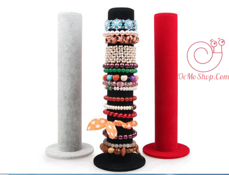 Kệ cao khoảng 31 cm, gồm 1 tầng duy nhất có đường kính 5cm, có giá đỡ đường kính 11cm để kệ có thể đứng vững. Vậy là bạn đã có thể thu gọn nhiều vòng tay chỉ bằng duy nhất 1 Kệ trưng bày vòng tay đứng lắp ráp đen/bố vàng lắp ráp siêu tiện lợi, siêu tiết kiệm.