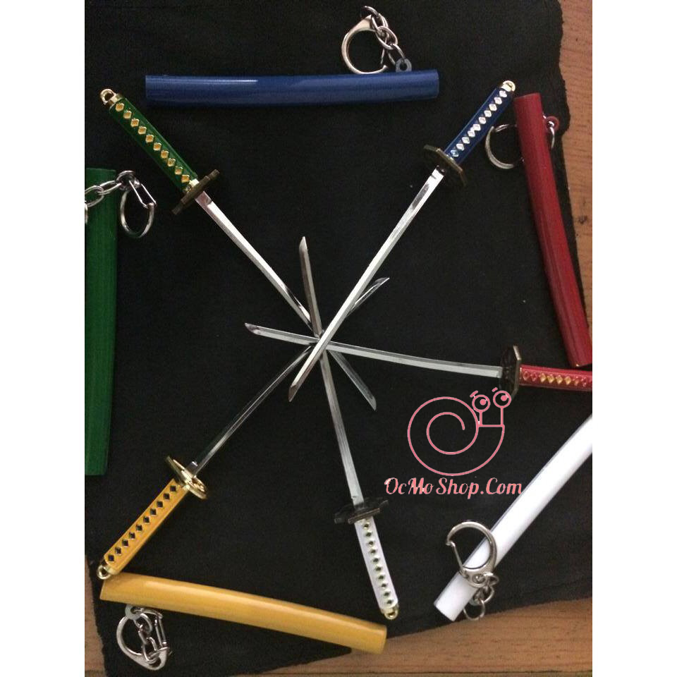 BỘ SƯU TẬP MÓC KHOÁ MÔ HÌNH KIẾM KATANA NHẬT CỦA ỐC MỠ SHOP ĐỦ MÀU 6 CÂY GỒM: đỏ, trắng, đen, xanh lá, xanh dương, vàng kim