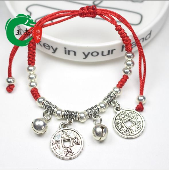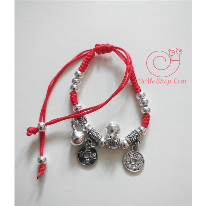Vòng tay dây rút chỉ đỏ Đồng Tiền may mắn phong thủy